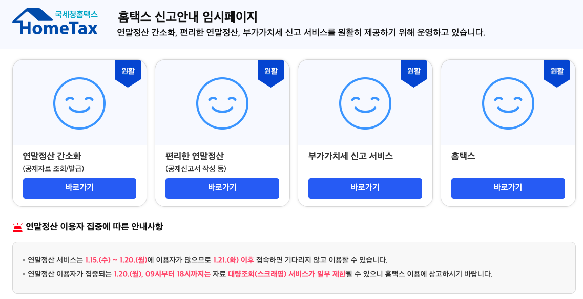 연말정산은 자신의 재정을 점검하고 국가가 제공하는 세금 혜택을 활용할 수 있는 중요한 절차입니다. 준비를 철저히 하고, 공제 가능한 항목을 최대한 활용하여 세금 부담을 줄이고 환급을 극대화하세요. 아래 링크를 통해 간소화 서비스를 바로 확인해보세요.