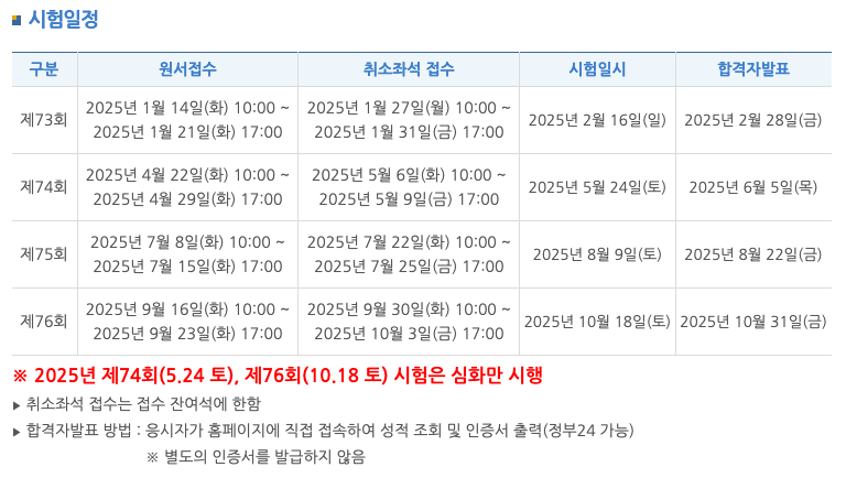 시험 일정 및 관련 정보는 수시로 변경될 수 있으니, 최신 정보를 확인하기 위해 공식 홈페이지 방문을 권장합니다.